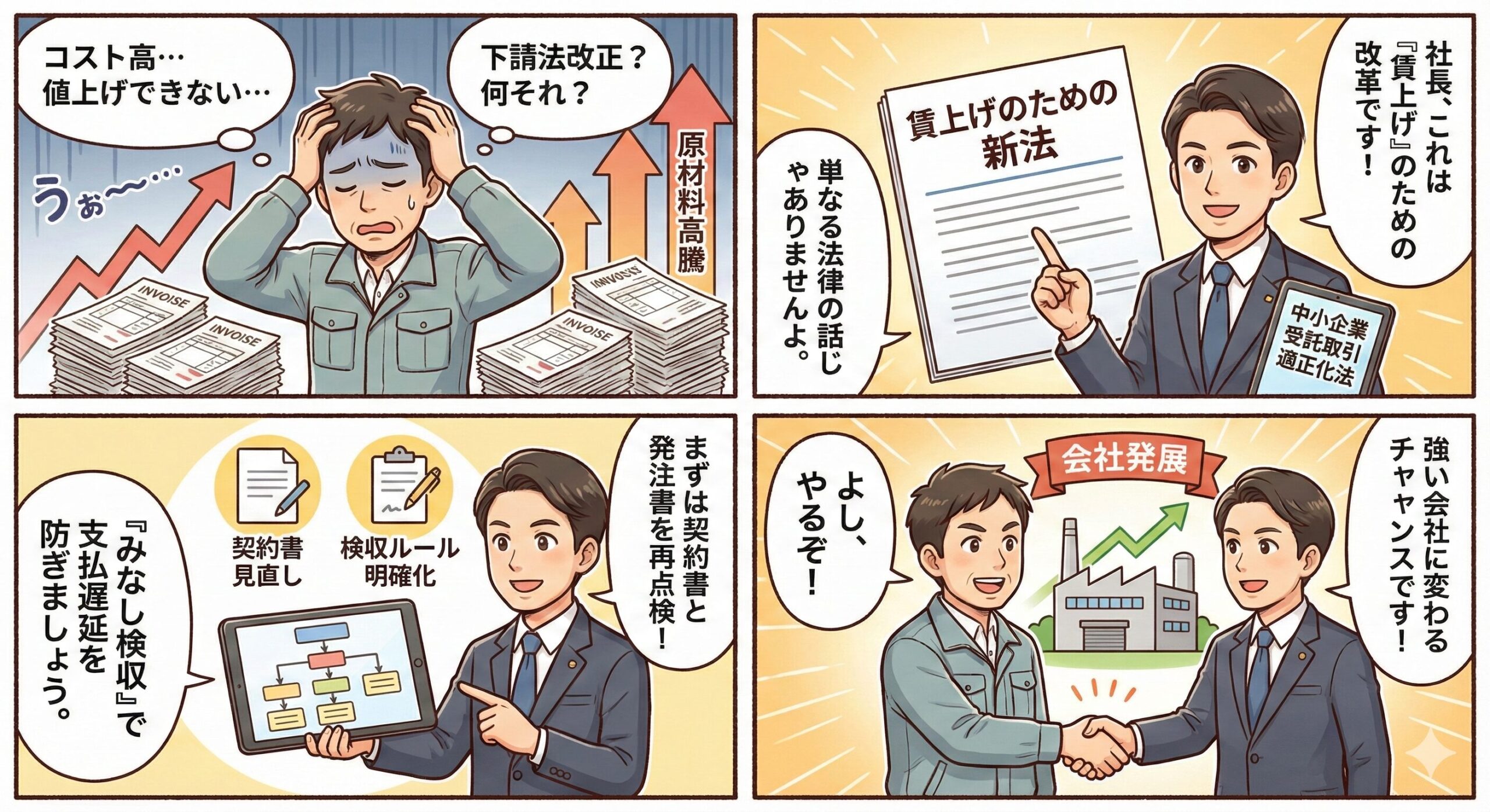 単なる法律の知識としてではなく、**「コスト高の時代に利益を守り、社員の賃金を上げるための経営基盤づくり」**としてお読みください。