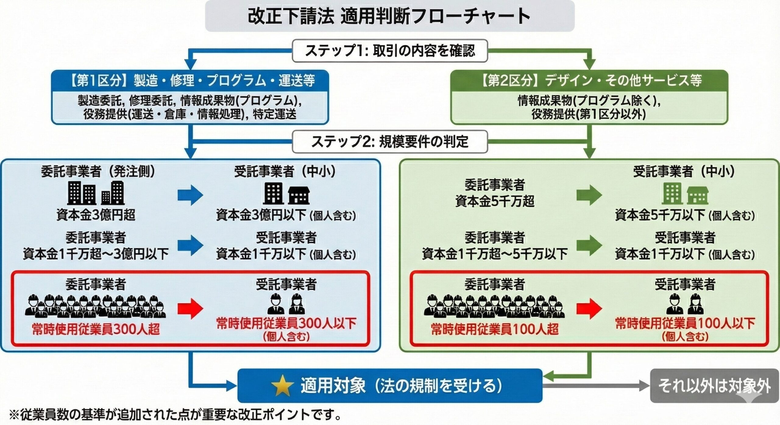 【改正下請法(中小受託取引適正化法)適用判定フローチャート】