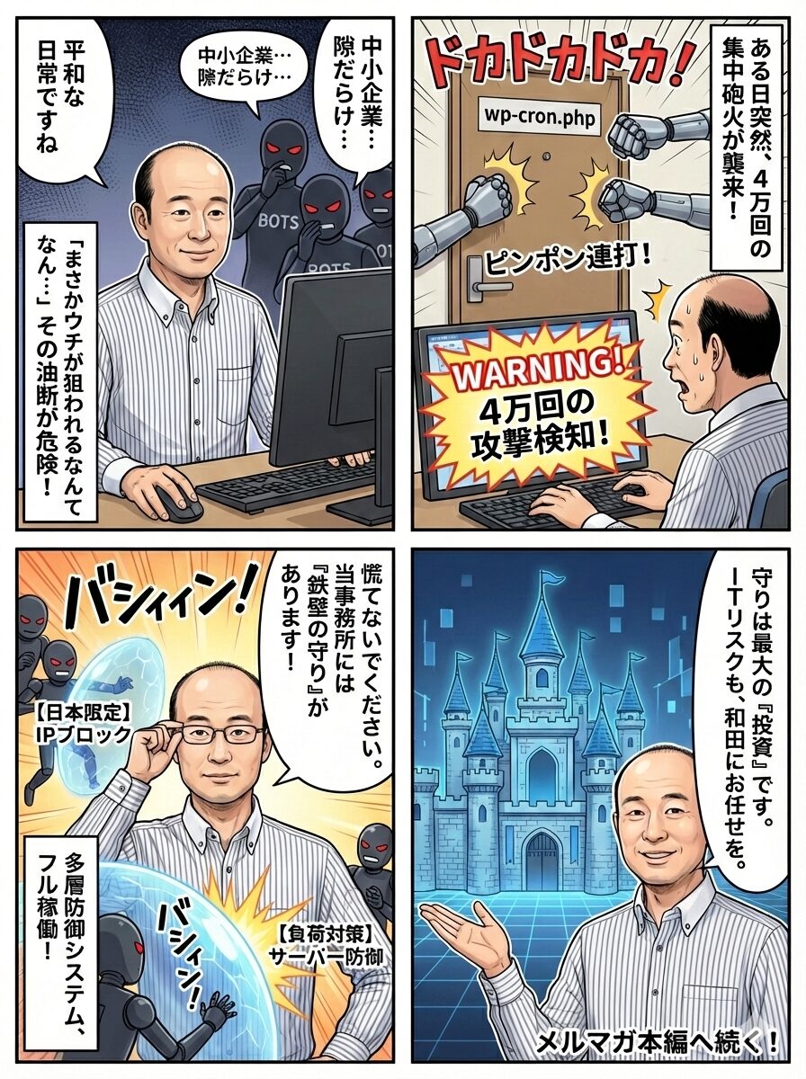 【重要】「ウチのような中小企業は狙われない」が一番危険です。~当事務所への4万回の攻撃と、鉄壁の防衛戦記~